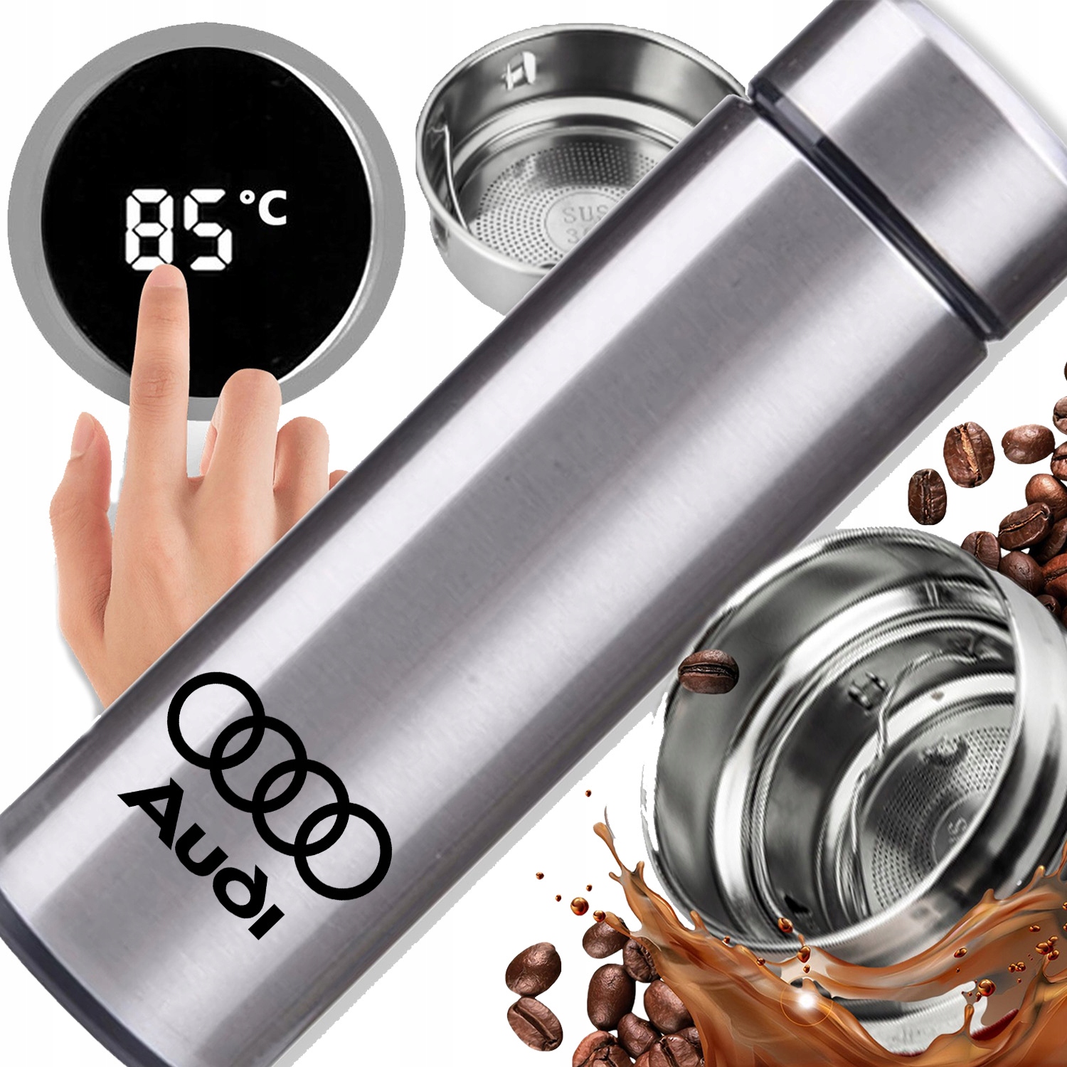 ТЕРМОС AUDI ТЕРМОКРУЖКА LED СРІБЛЯСТИЙ ДЛЯ КАВИ ЧАЙ ДЛЯ АВТОМОБІЛЯ