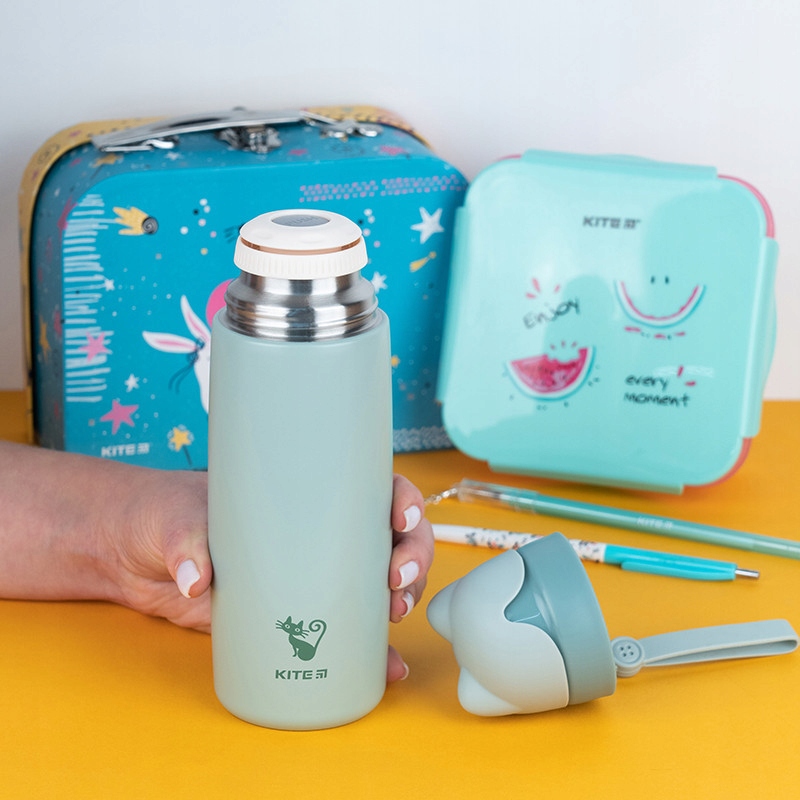 ТЕРМОС ДИТЯЧИЙ З КУХЛЕМ МЕТАЛЕВИМ З РУЧКОЮ, ЗЕЛЕНИЙ, 350 мл KITE