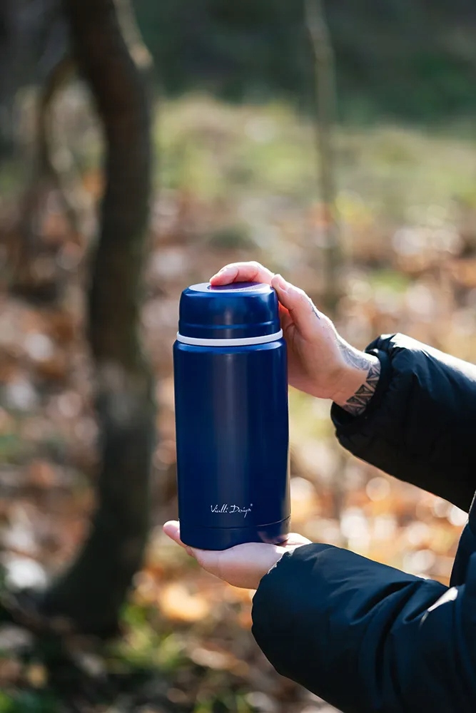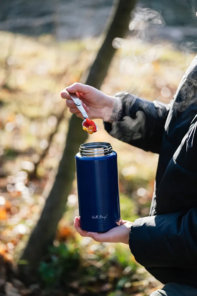 Аксессуар оснащен стальной вакуумной изоляцией, что позволяет долгое время наслаждаться едой нужной температуры. При этом благодаря продуманной конструкции внешняя часть контейнера не нагревается. Это позволяет безопасно держать термос с горячим содержимым без риска обжечь руки. Особая структура контейнера также предотвращает появление конденсата на поверхности контейнера.