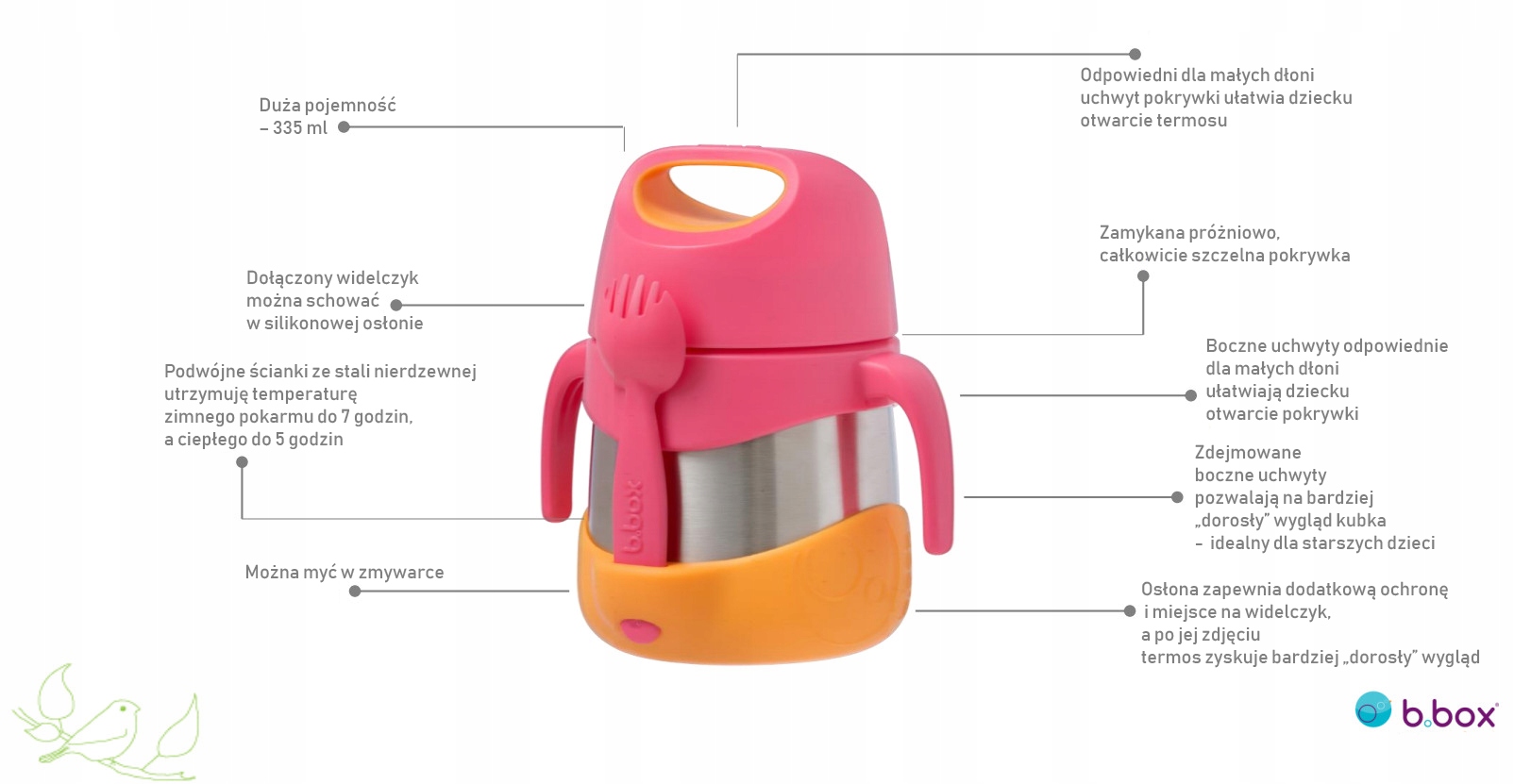 - термос комплектуется безопасной вилкой, которая крепится к крышке (компактный набор, который легко брать с собой куда угодно);