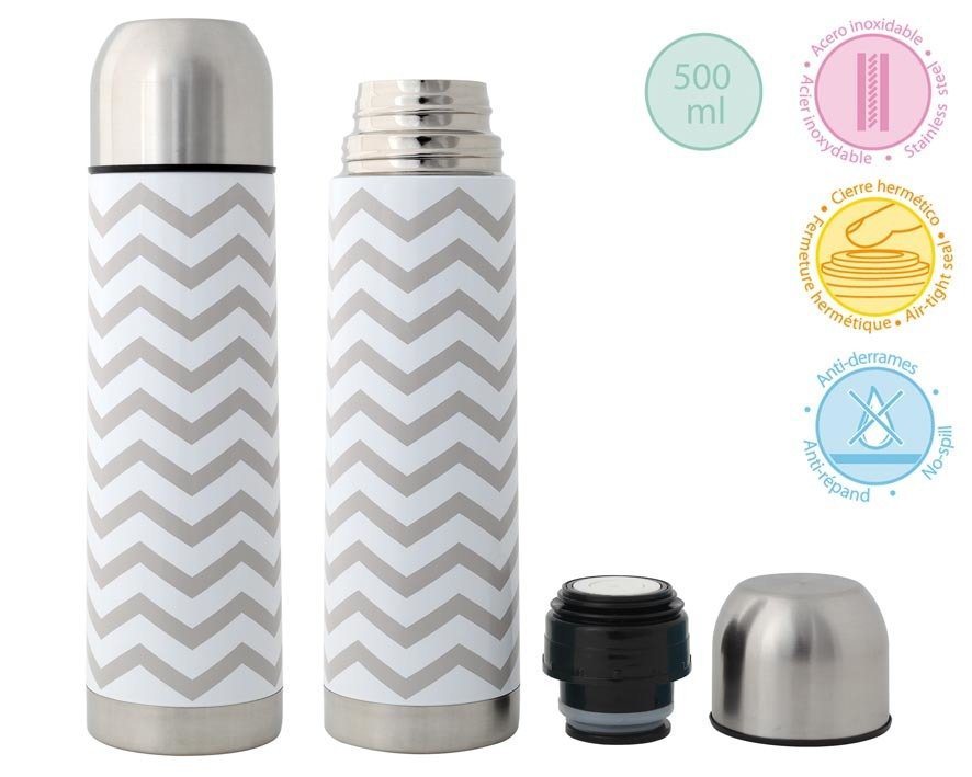 Термос для напитков 500 мл, серые полосы, Kiokids