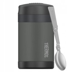 Вакуум изолированный термос из нержавеющей стали для пищи со складывающейся ложкой с объемом 470 мл. Thermos характеризуется широким выходом для легкой прибыли пищи непосредственно от термоса. Гайка формируется, чтобы легко открыть/закрыть термос. Складная ложка оснащена двумя петлями - в сложном состоянии она подходит для полости в гайке. Дно термоса защищена устойчивой нелейной ногой.