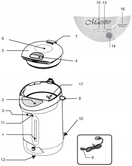 - Индикатор уровня воды.