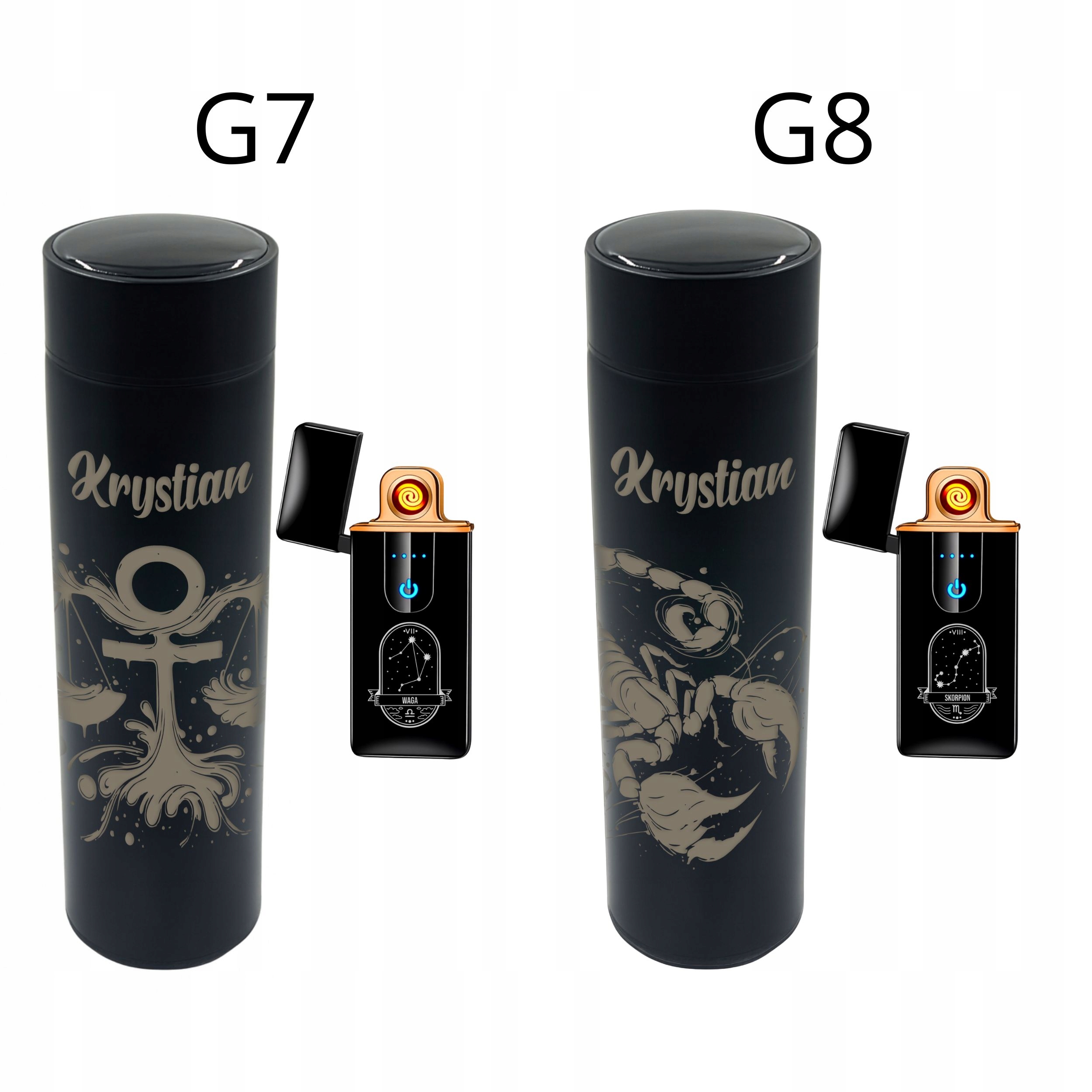 Вот идеальный набор - термос с гравировкой имени и рисунком знака зодиака на выбор + Электрическая USB-зажигалка с гравировкой созвездия, соответствующего выбранному. знак.