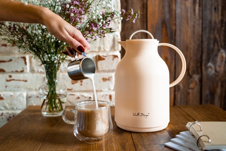 Thermos with стеклянной вставки Brand vialli Design - это продукт, который будет отличным на различных встречах, конференциях или семейных праздниках. Он имеет стекло вакуумную изоляцию , благодаря которому вы предоставите гостям правильную температуру подаваемого напитка, как теплый, так и холодный даже до 24H .