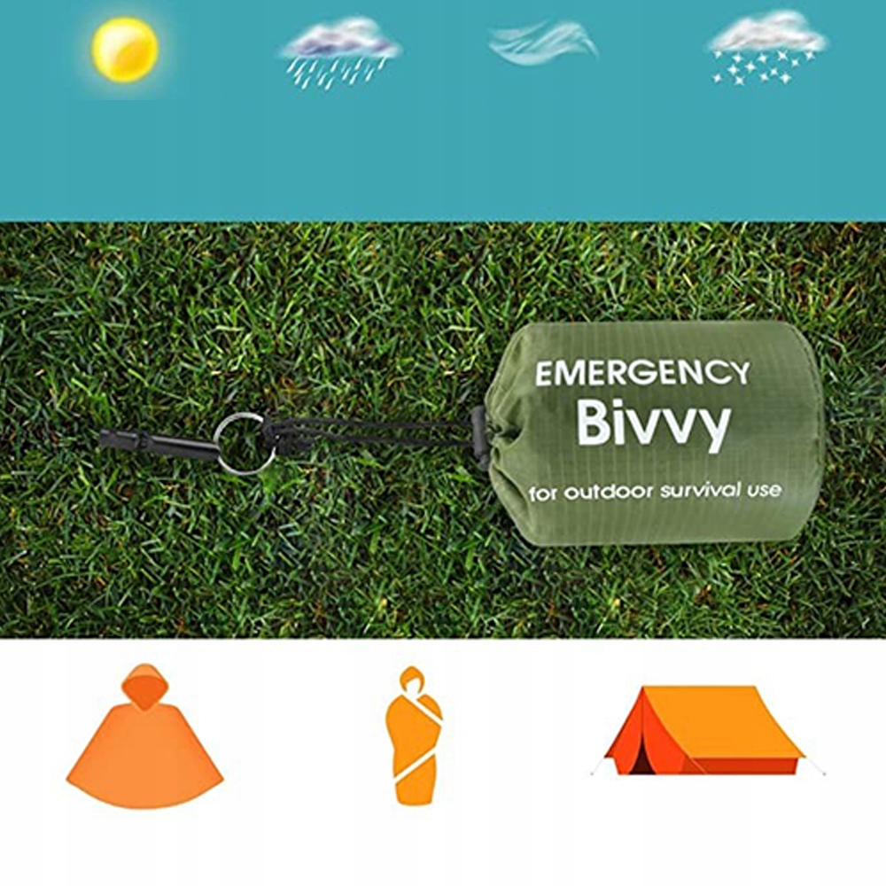 Многофункциональна как сумка для выживания, пончо, чехол для рюкзака, аварийное укрытие, дождевое пончо, сигнал тревоги, защита от ветра и т. д. Подходит для кемпинга, каякинг, пешие походы и другие виды активного отдыха.