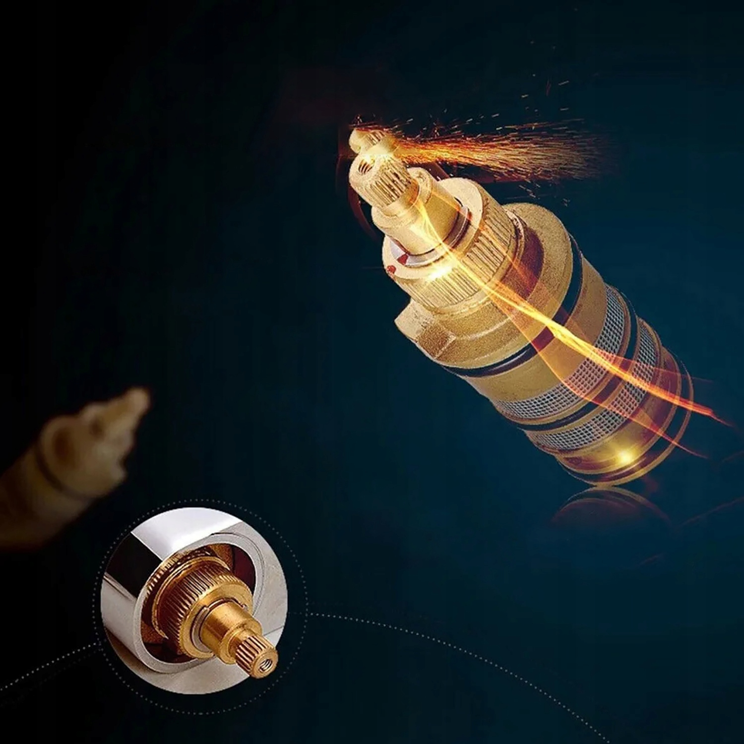 После монтажа термостатической головки рекомендуется выполнить калибровку. Это действие направлено на установку температуры таким образом, чтобы фактическая температура воды соответствовала масштабе, которая видно на организме тела. После вставки головки в гнездо и прикрепленного к противораковым винту, ее следует отрегулировать, снижать или повысить температуру до получения 38ºC. Затем просто поместите ручку так, чтобы маркер ручки указывал 38ºC в масштабе температуры.