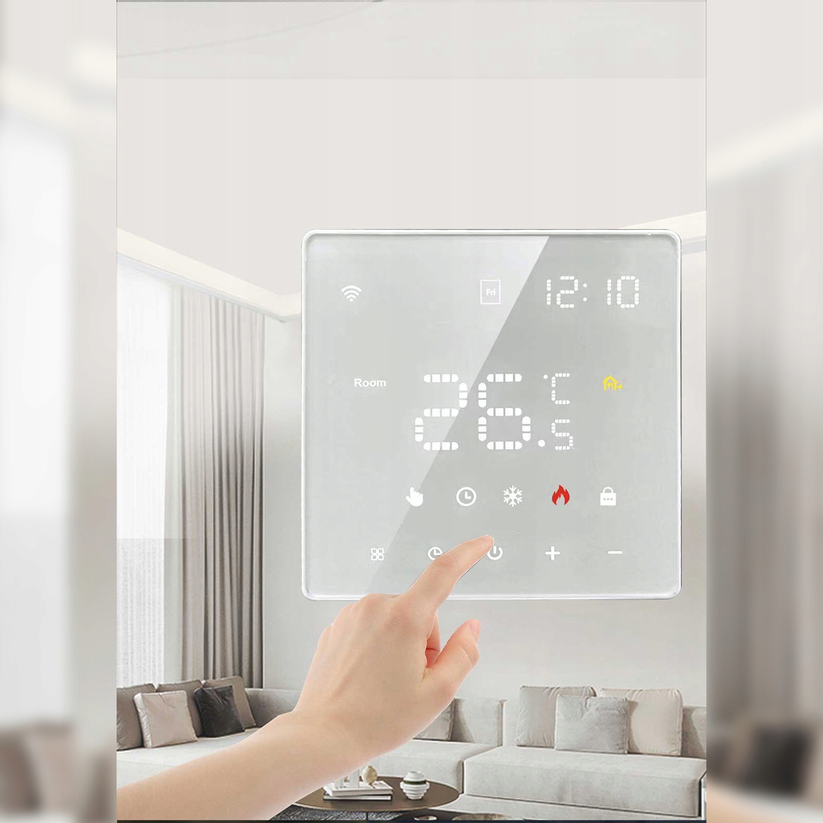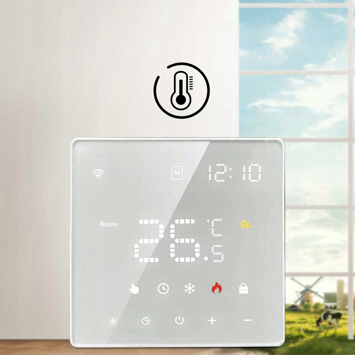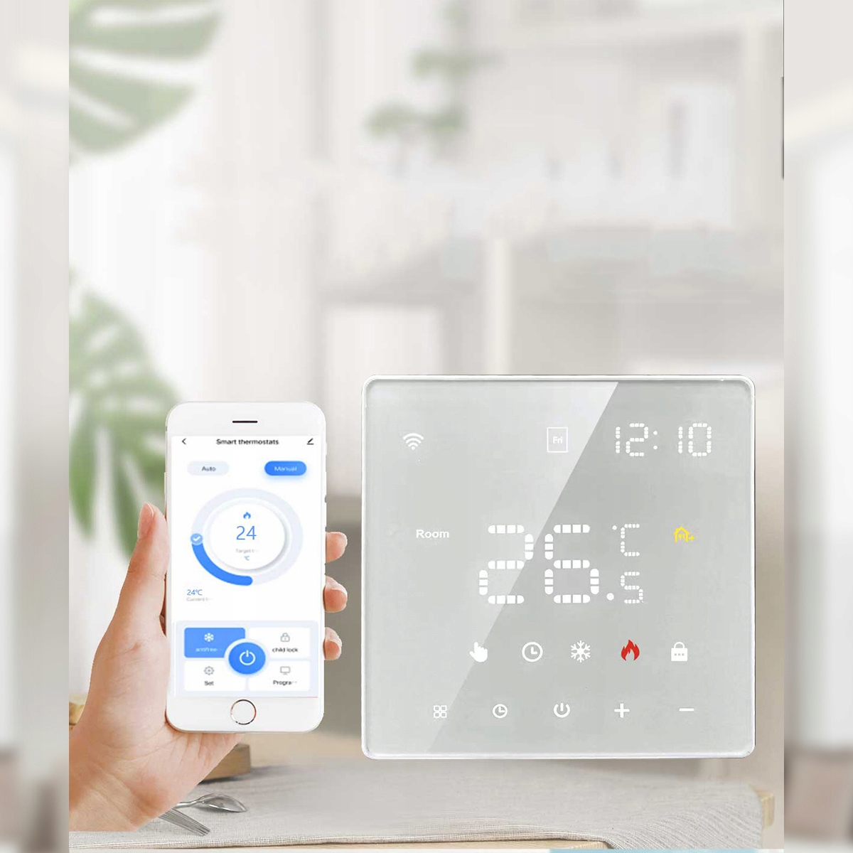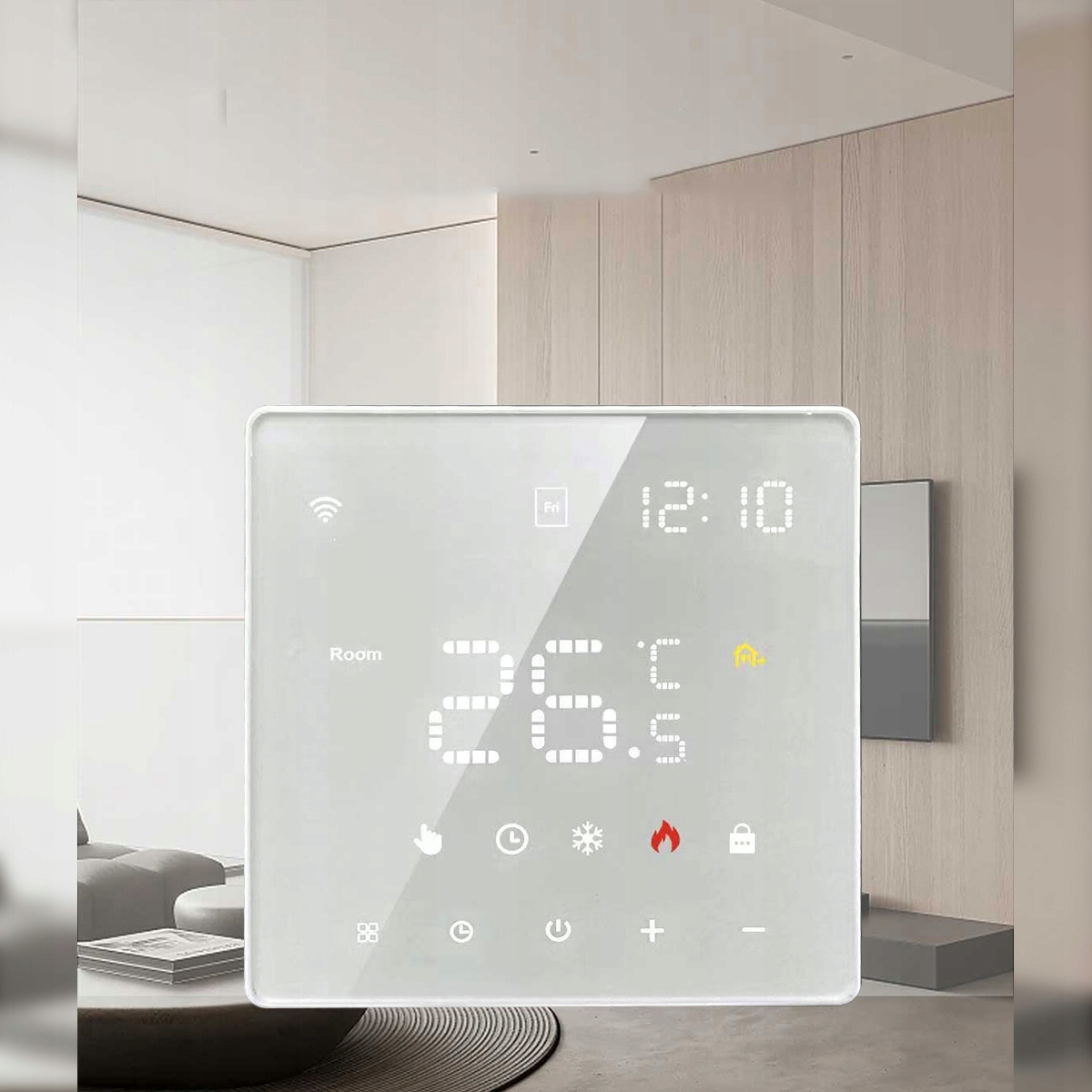 умный термостат, которым вы можете управлять со своего мобильного телефона перед возвращением домой (приложение: Tuya Smart).