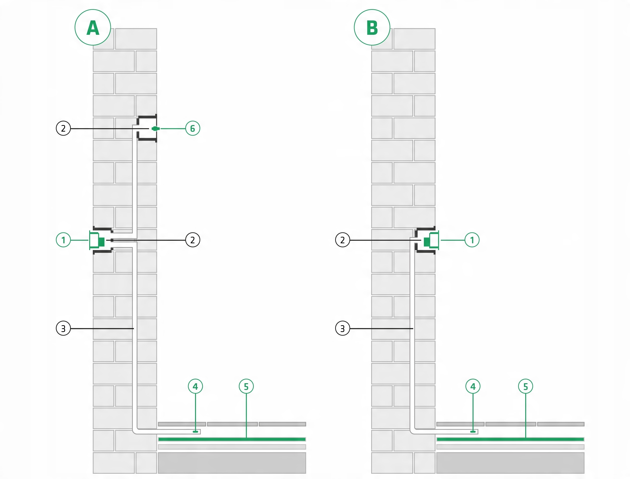 Схема установки термостата во влажном помещении (А) и сухом помещении (Б)