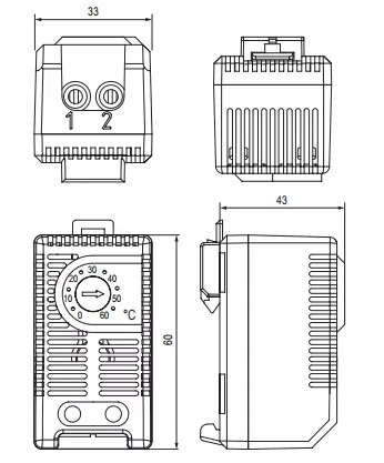 Механический термостат Регулируемый 0–60°C НЗ 120–230 В переменного тока 10 А 24–72 В постоянного тока 30 В