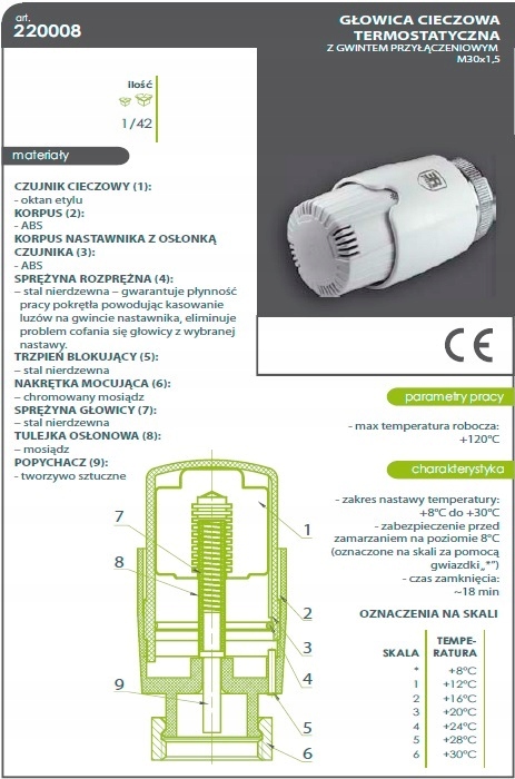 Термостатический головка M30x1,5