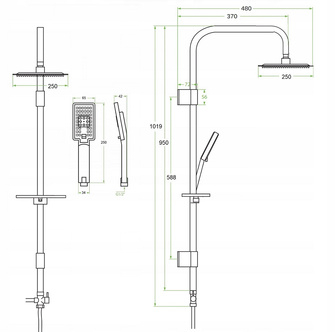 Черный переключатель предназначен для душевых колонн, в которые можно установить детали с резьбой 3/4 x 1/2 дюйма. Габариты устройства также имеют значение. В данном случае высота 65 мм, ширина 65 мм и глубина 28 мм.