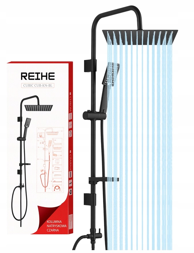 Термостатичний змішувач + Тропічний душ 25x25 см тонка колонка BLACK LOFT