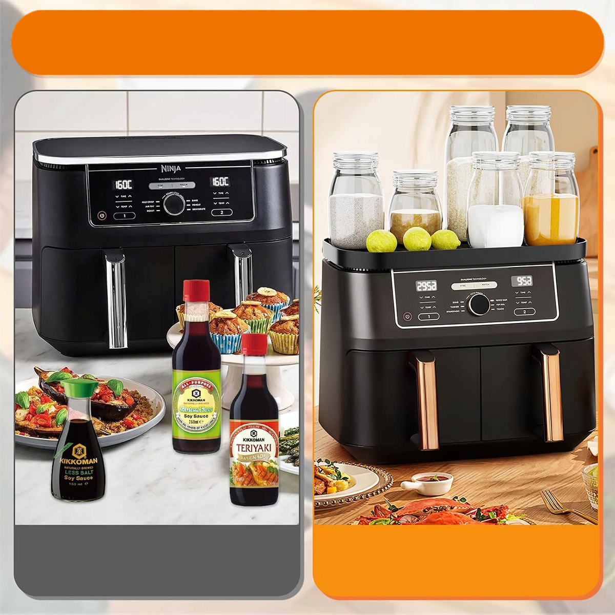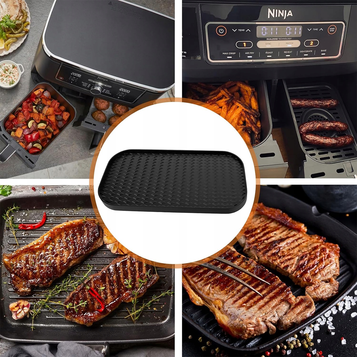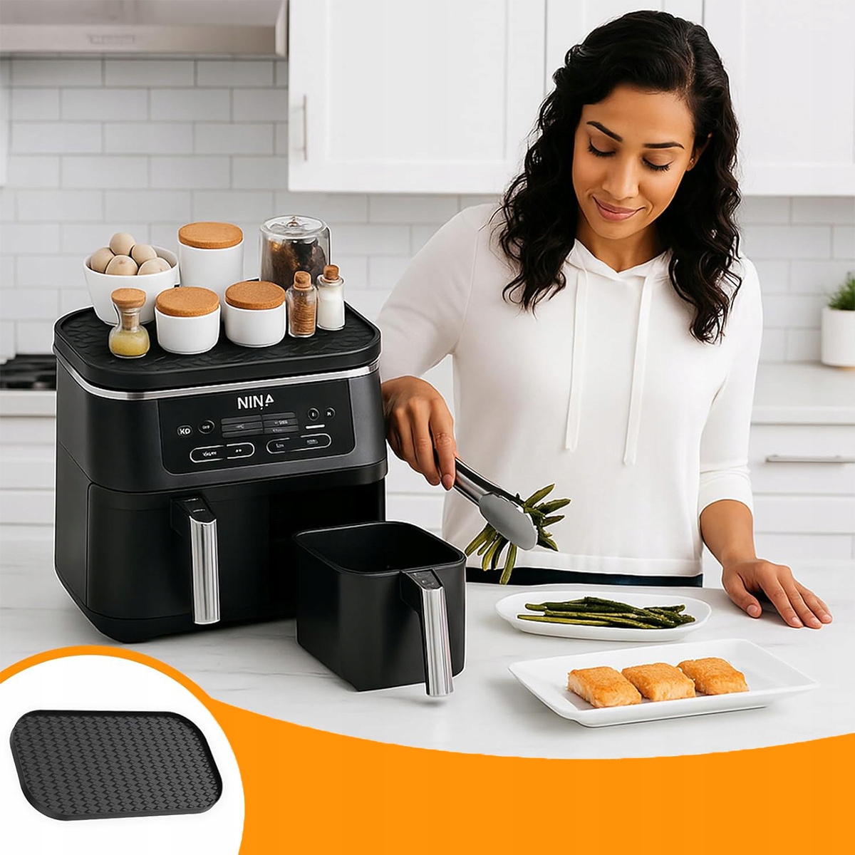 🔸Точная посадка: адаптирована к популярным моделям аэрофритюрниц Ninja Dual Zone AF500EU, AF400EU и AF451EU. Размеры 41,5 x 23 x 2 см идеально приспосабливаются к поверхности фритюрницы. Закрывает верхнюю часть фритюрницы. Это позволяет лучше использовать кухонную столешницу и оптимизирует мобильность на кухне.