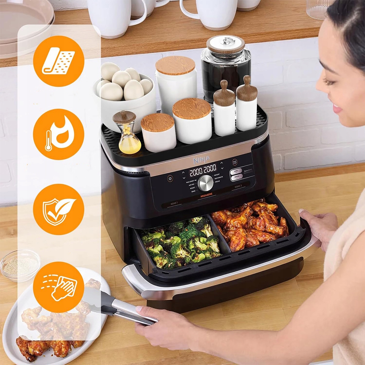 Удвойте ценность вашей фритюрницы Ninja, вмешиваясь во весь процесс — от маринования и размещения мяса до подачи и расстановки блюд, хранить их после еды!