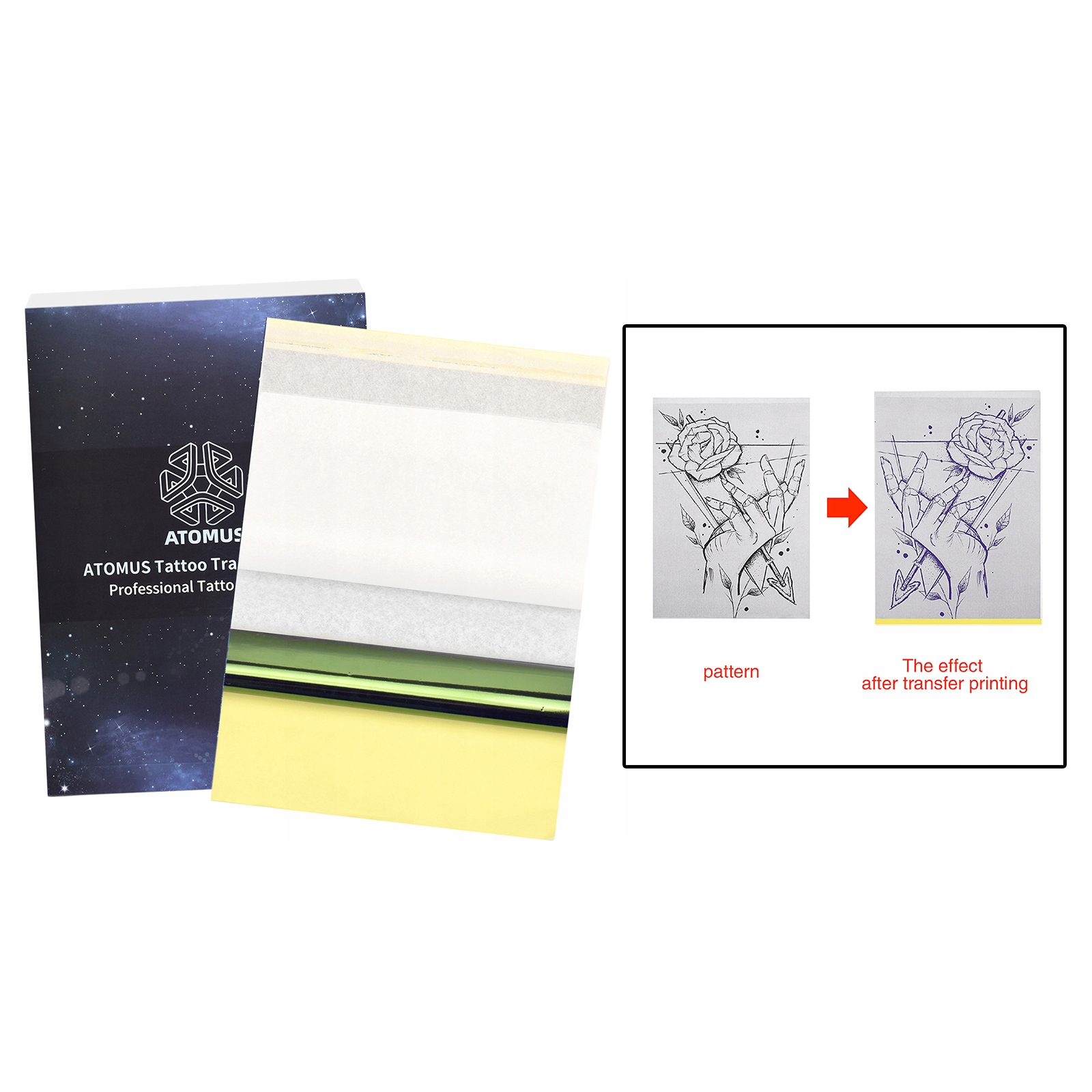 ОТЛИЧНЫЕ РЕЗУЛЬТАТЫ: эту бумагу для переноса татуировок можно использовать для термокопировальных аппаратов или для рукописного ввода, и их можно легко, чисто и гладко переносить на кожу, что очень подходит для тату-салонов и художников.