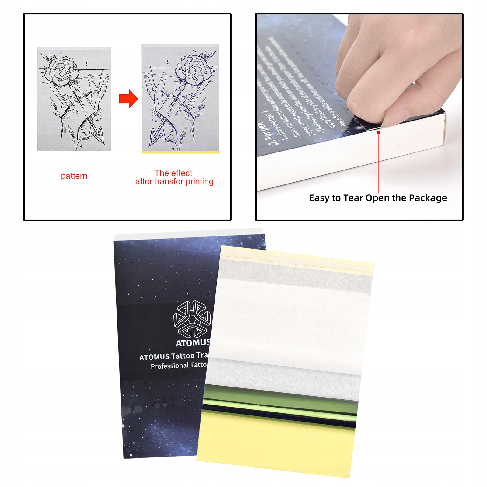 . ВЫСОКОКАЧЕСТВЕННЫЙ МАТЕРИАЛ: бумага для переноса татуировок, не выцветает, не легко окрашивается. Создает четкие, чистые копии темных цветов. Простота в использовании.