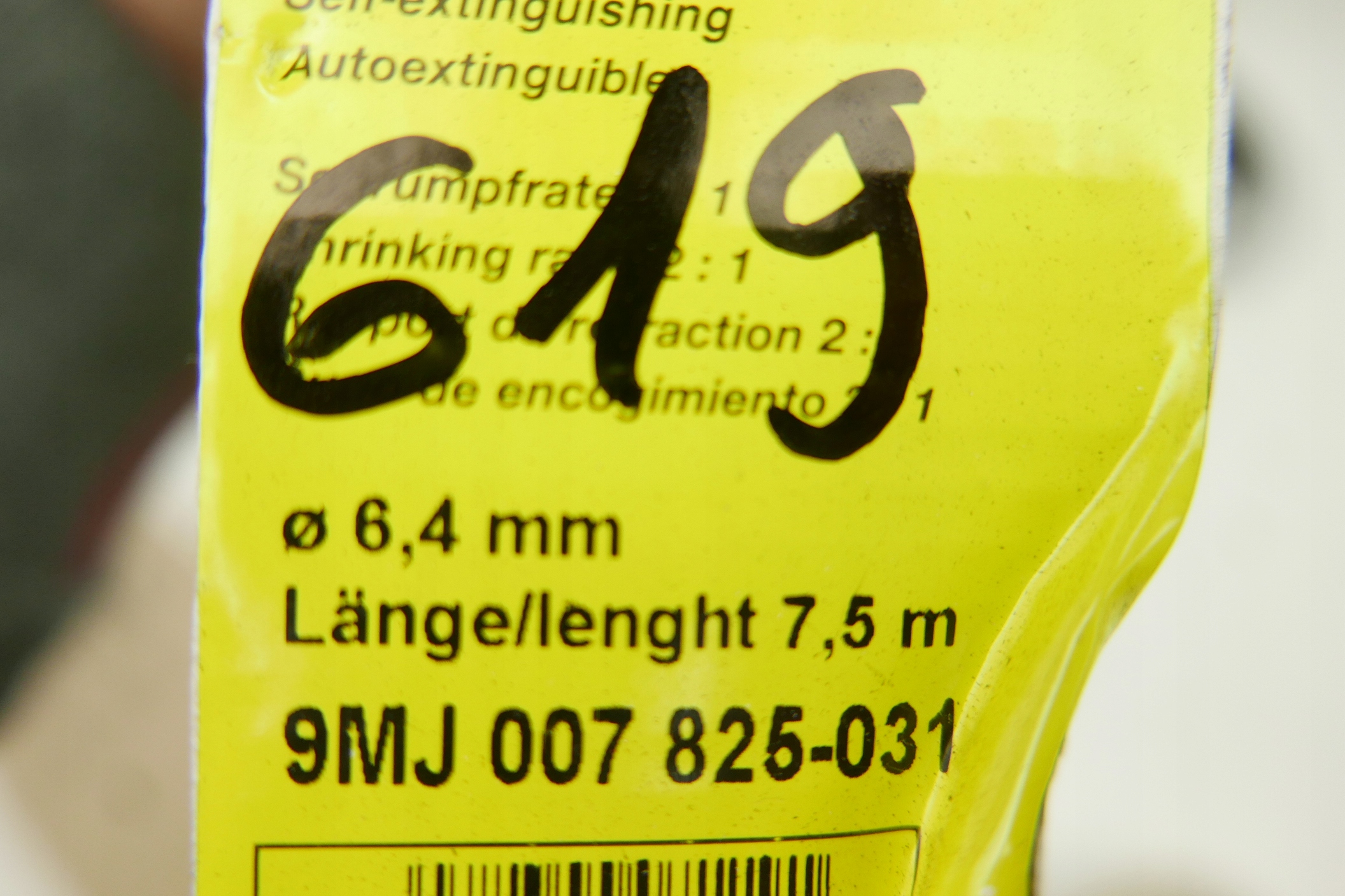 ТРУБКА ТЕРМОУСАДОЧНАЯ ДЛЯ КАБЕЛЕЙ 9MJ 007 825 031