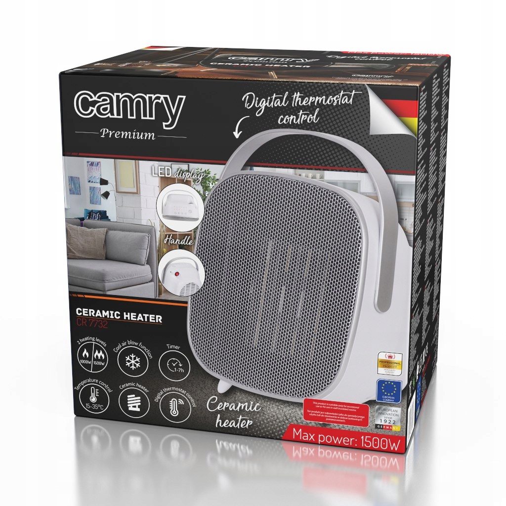 Тепловентилятор с эффективным керамическим нагревателем. Устройство имеет таймер, позволяющий установить время работы от 1 до 7 часов. На светодиодном дисплее отображается выбранная температура в диапазоне 15–35°C и уровень мощности нагрева 2. Тепловентилятор нагревает мощностью 1100 Вт или 1500 Вт. Предохранительный выключатель, автоматически отключающий питание в случае опрокидывания устройства, защита от перегрева. Устройство имеет функцию нагрева и вентиляторного охлаждения.