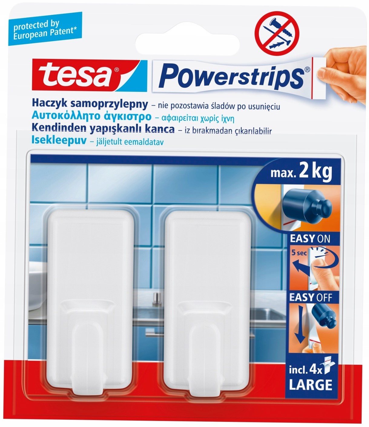 Крючки TESA, белые, самоклеящиеся, 2 шт.