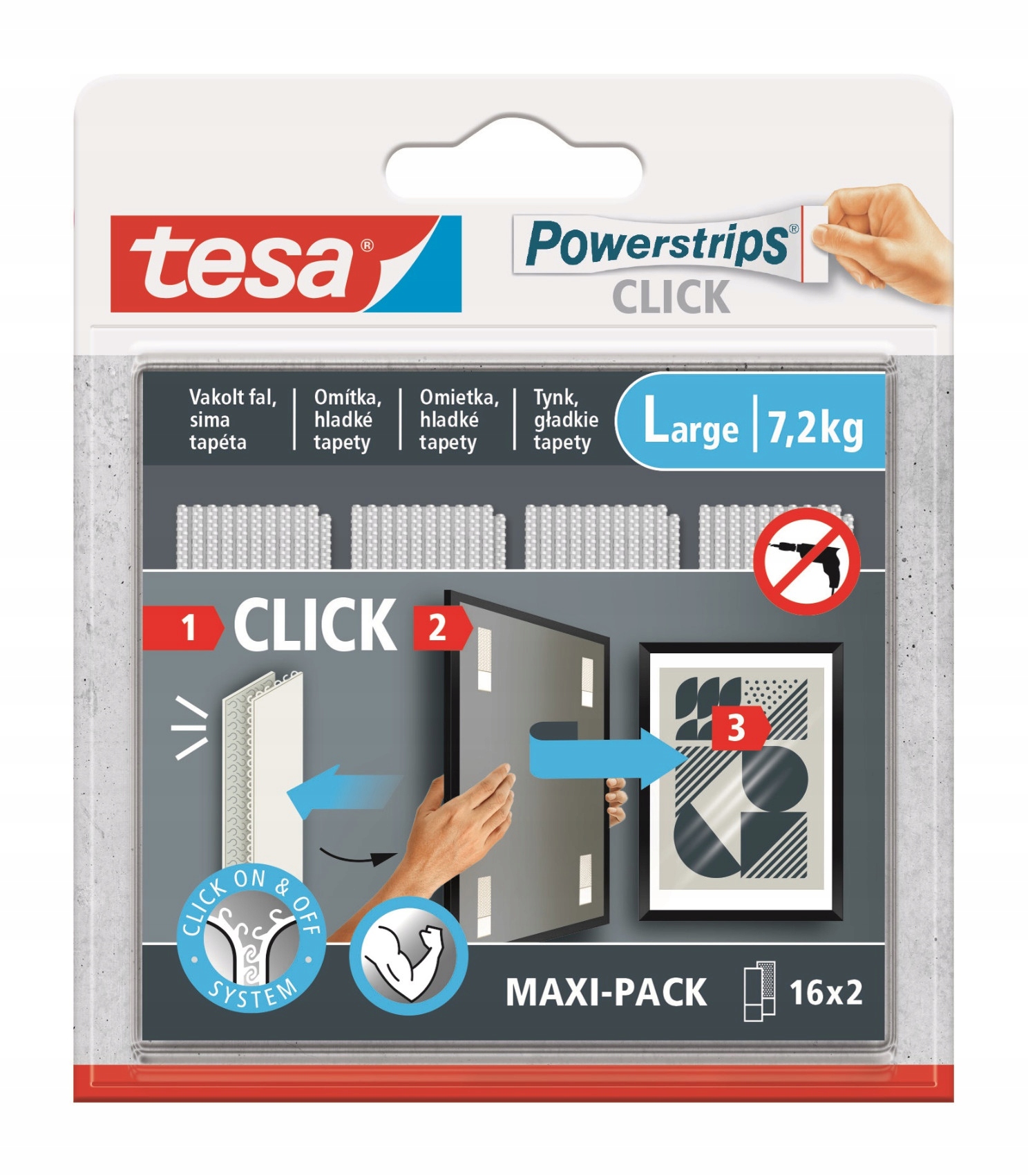 PowerStrips® Click Self -Adhesive Telebro -это тонкое и в то же время чрезвычайно функциональное решение, созданное для эстетического и неинвазивного прикрепления изображений, графики или других плоских украшений. Их инновационный дизайн позволяет вам наслаждаться прекрасным интерьером без необходимости бурения, используя гвозди или повреждая поверхность стен.
