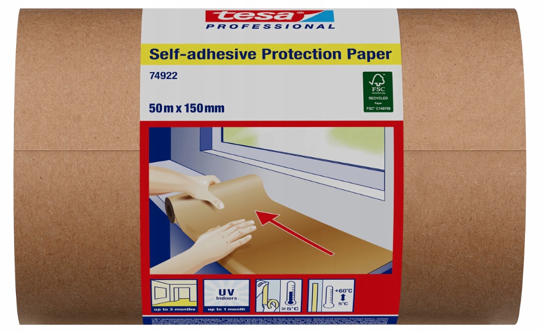 Самоадгезивная защитная бумага TESA -это профессиональное качество Kraft Paper, идеально подходящая для защиты больших площадей во время рисования или ремонтных работ. Он обеспечивает легкую и эффективную защиту от проливной краски и царапин на различных поверхностях, таких как подоконники, лестницы, полы и столешницы. Его легко нанести, двигаться и отрезать, не оставляя клей, что означает, что уборка по убранным вопросам.