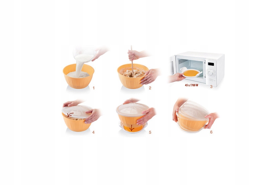 - С помощью умной чаши DELÍCIA вы сможете приготовить гладкое тесто, которое будет подниматься в два раза быстрее. Положите ингредиенты в миску, перемешайте лопаткой, накройте плотно крышкой и встряхивайте миску около минуты. Затем отложите в сторону и подождите, пока крышка станет выпуклой. Так вы будете знать, что тесто уже отлично поднялось. Это произойдет гораздо быстрее, если под тесто на дно чаши положить гелевую грелку, которую вы предварительно разогрели в микроволновой печи или погрузили в воду температурой ок. 70°С. Разумеется, это часть набора.