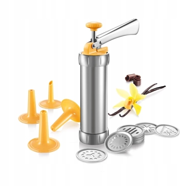 - Высококачественный пресс для украшения тортов из нержавеющей стали, силикона и пластика.