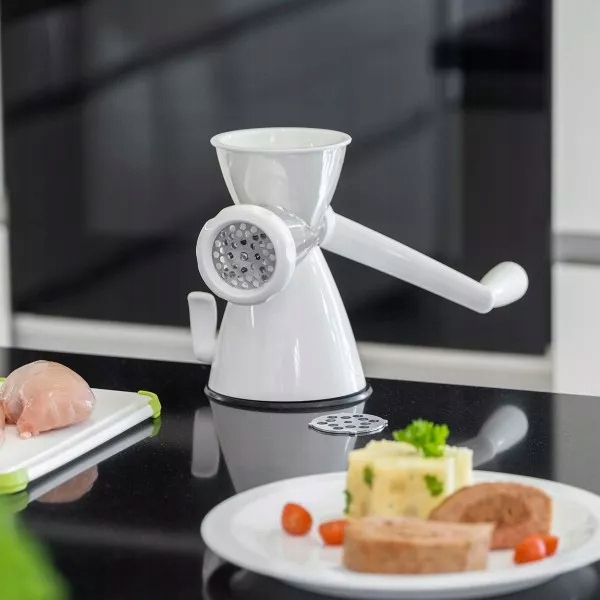 Универсальная удобная ручная мясная машина благодаря двум заменяемому щиту предназначена не только для измельчения мяса, но и для других продуктов, которые мы хотим мелко или толстые. В дополнение к мясу, он также будет справляться с твердым хлебом, офталом, твердым сыром пармезан, грецкими орехами, помидорами или луком.