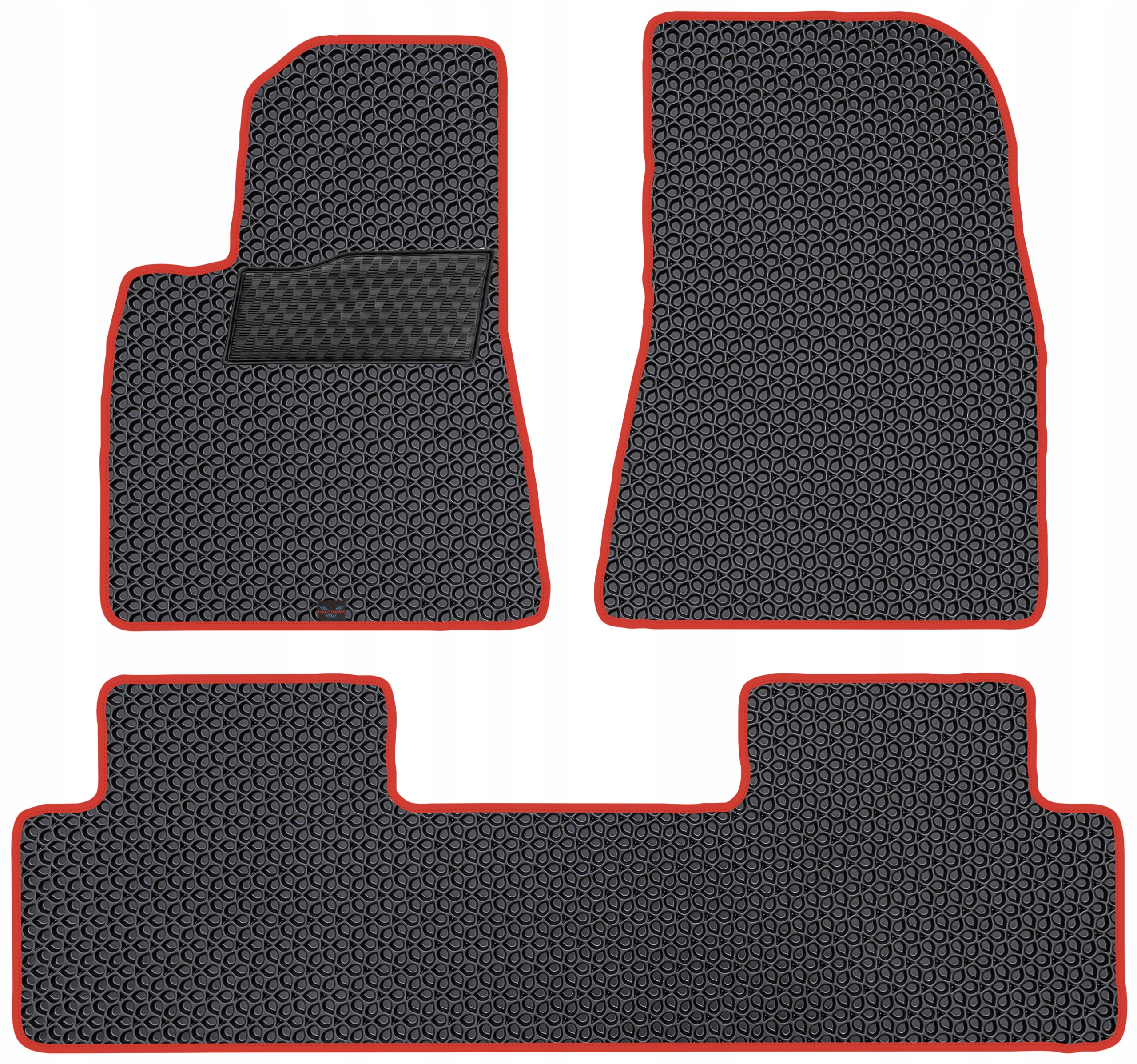 Большим преимуществом предлагаемых ковриков является усиление, вшитое в водительский коврик. Путем вшивания резиновой вставки получилось высокоэстетичное и практичное изделие, главным преимуществом которого является высокая прочность и функциональность. Коврики имеют новый, уникальный дизайн. Резиновое усиление, вшитое в коврик из ЭВА под пяткой водителя, — идеальное решение для людей, которые хотят повысить долговечность своего автомобильного коврика.