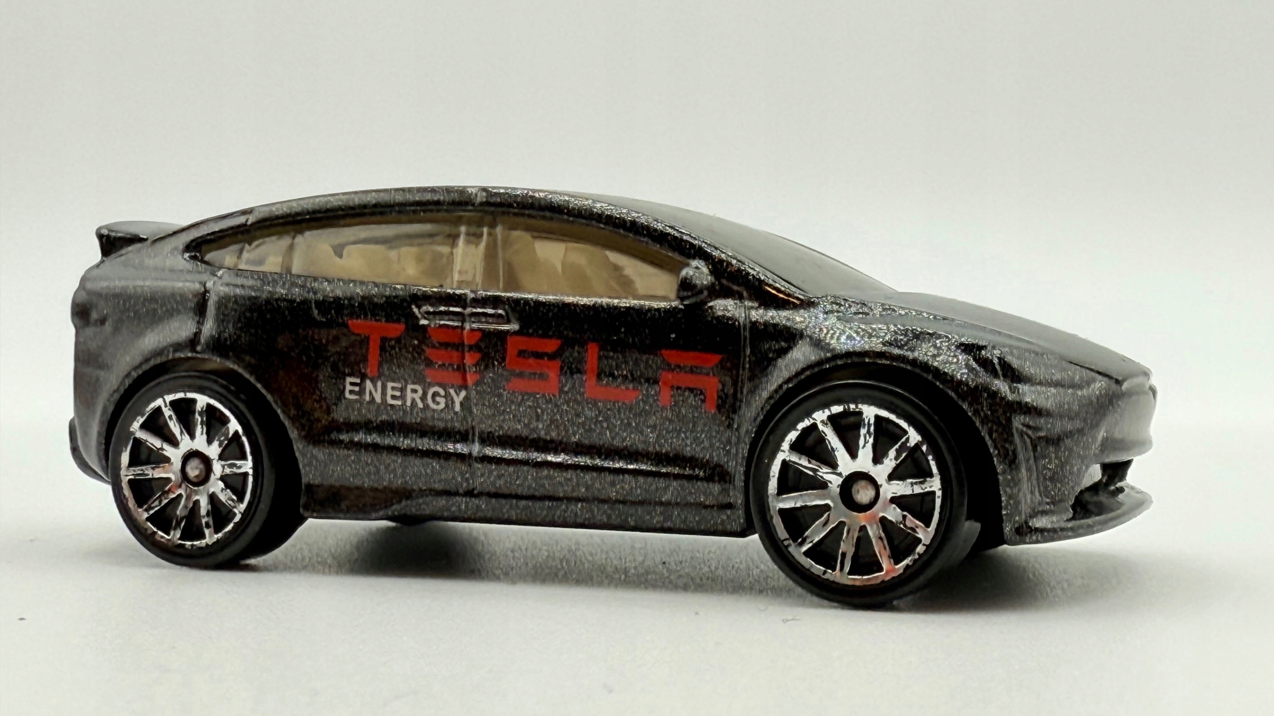 Бренд: Hot Wheels • Модель: Тесла Модель X • Производитель: Маттел • Масштаб: 1:64 • Состояние: Б/у • Материал: металл + пластик. • Длина (мм): прибл. 70 мм • Цвет: Черный с красными надписями «TESLA ENERGY». • Дополнительно: реалистичные детали, спортивные диски. • Номер по каталогу: DTX01. • Сделано в Малайзии