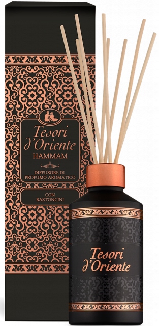 tesori d'Oriente представляет освежитель с палочками с ароматом хаммама, это уникальный освежитель, роль которого является тонкой, долговечной и эффективной добычей правильного количества освежения с любимым острым ароматом - от турецкой ванны