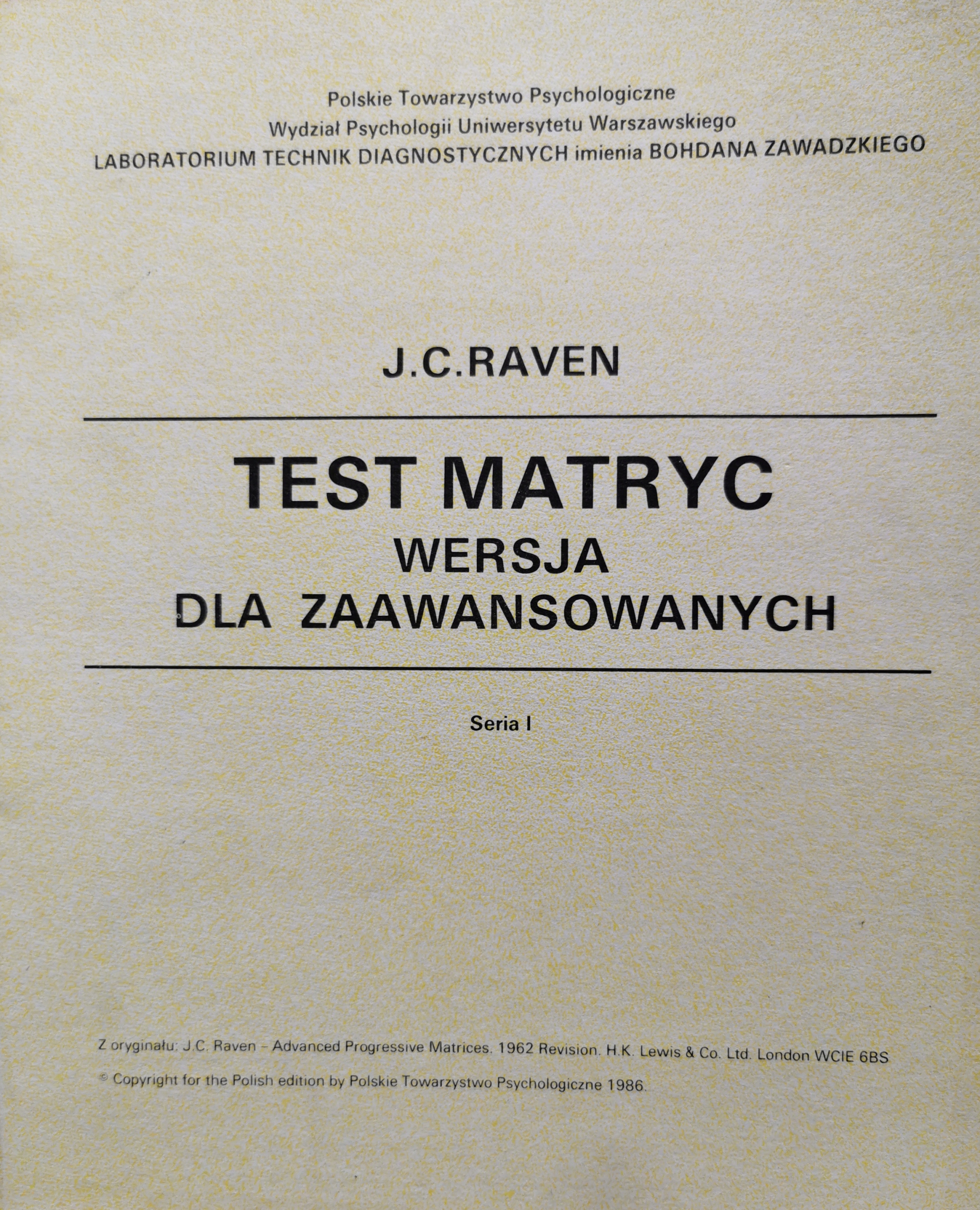 Test matryc Wersja dla zaawansowanych Seria I J. C. Raven