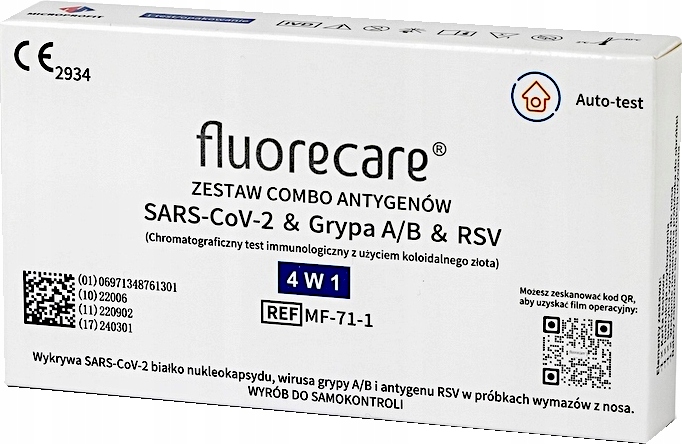 Fluorecare — иммунохроматографический тест для домашней диагностики in vitro, предназначенный для качественного, дифференциального выявления вирусного белкового нуклеокапсидного антигена: