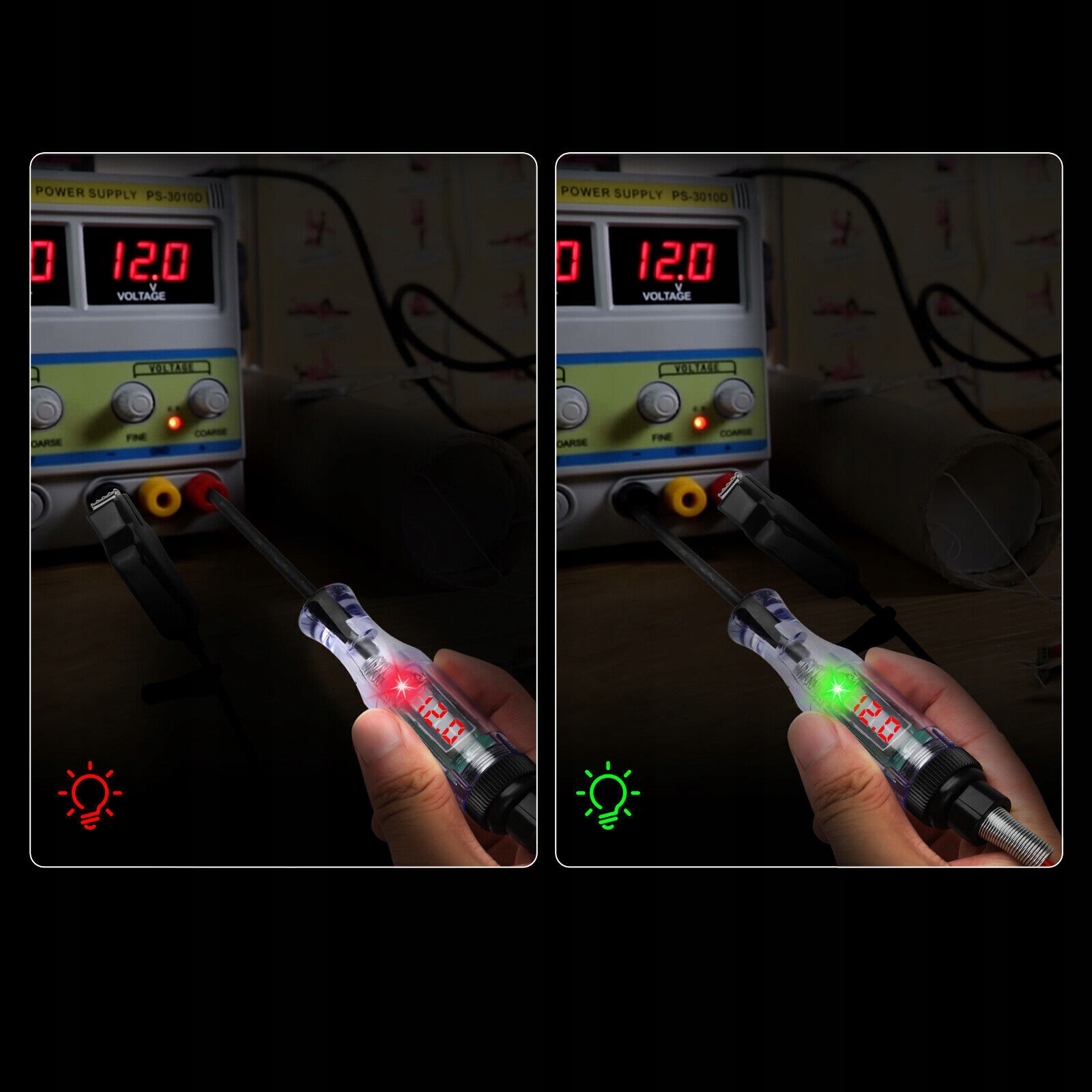 Широкое приложение: Профессиональный тестер/тестовый тестовый тестовый тестовый ветер с тестовым диапазоном 3 V-6 V-12 V-24 V-48 V DC, идеально подходящие для проверки различных электрических цепей транспортных средств, быстрого тестирования фар автомобилей, задних светильников, направленных цепей, поврежденных гнезд, мусочных зажимов и других ваблеров и других целей.