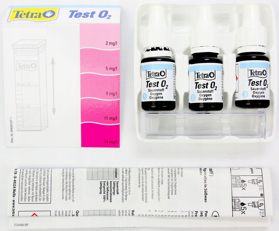 TETRA O2 Test — это капельный тест, используемый для проверки уровня насыщения кислородом воды в резервуаре. Недостаточная оксигенация аквариума (<60%) ослабляет рыб и делает их более восприимчивыми к болезням. В крайних случаях это может даже вызвать удушье.