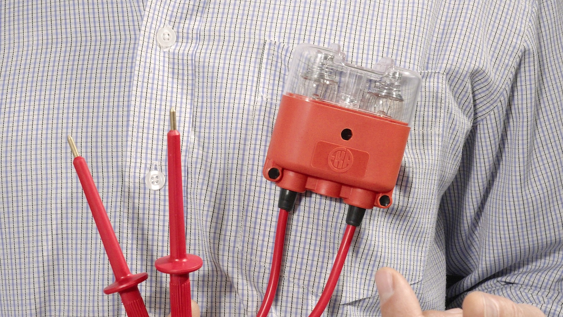 - Практичный зажим для крепления рубашек и ремней — обе руки свободны для проверки.