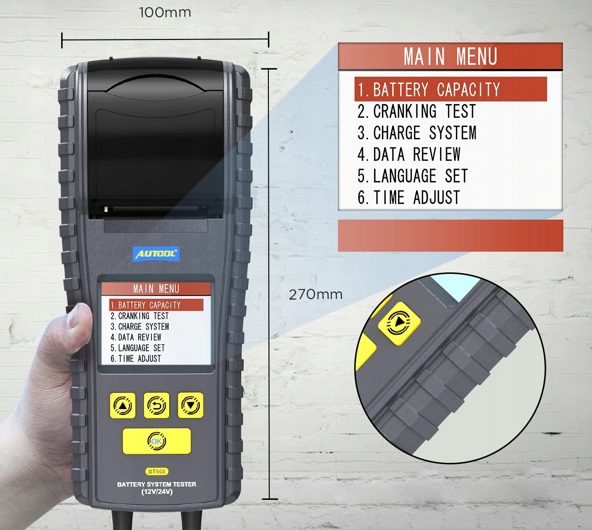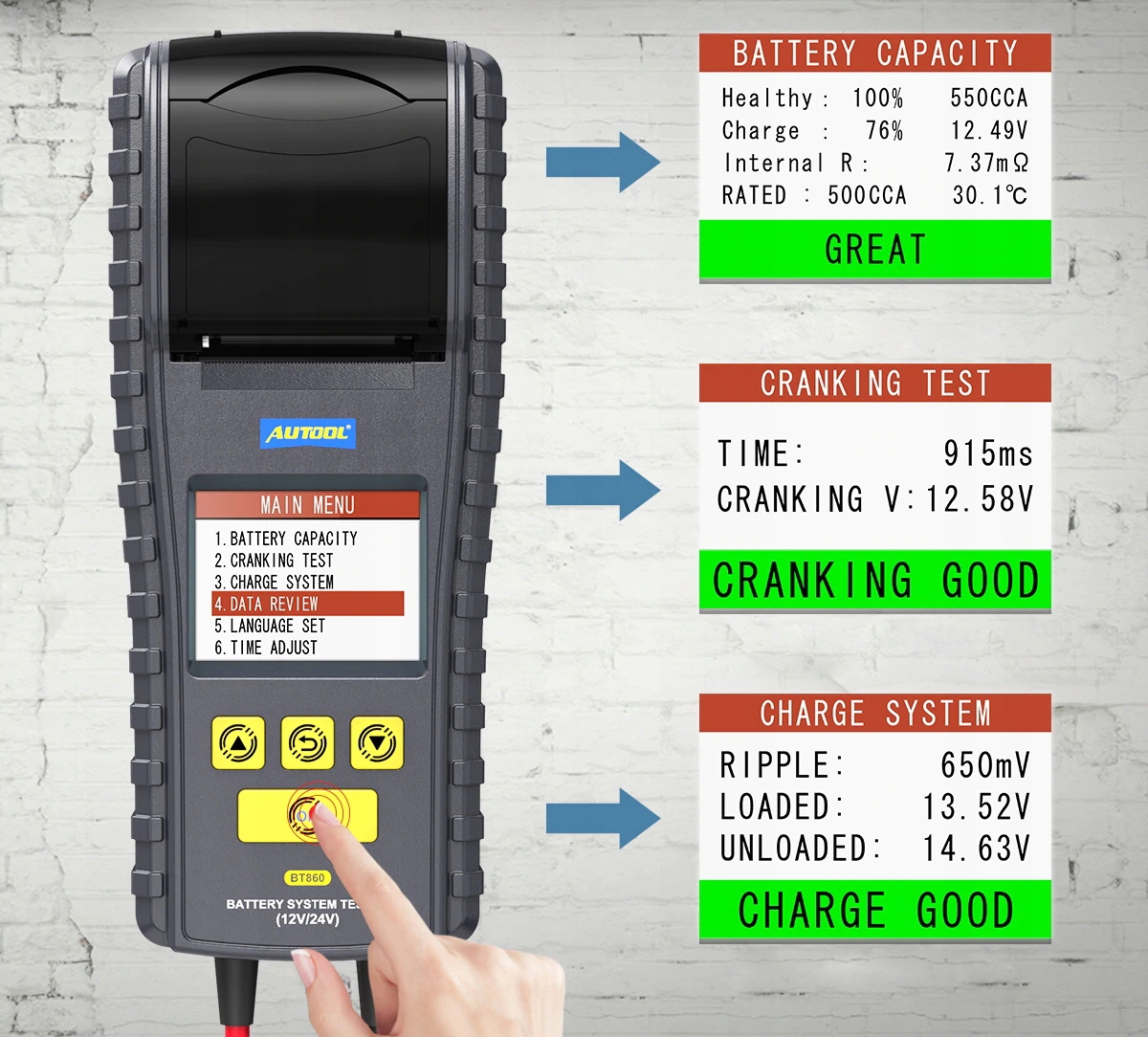 Autool BT-860 CAR Battery Tester со встроенным принтером. Спираль