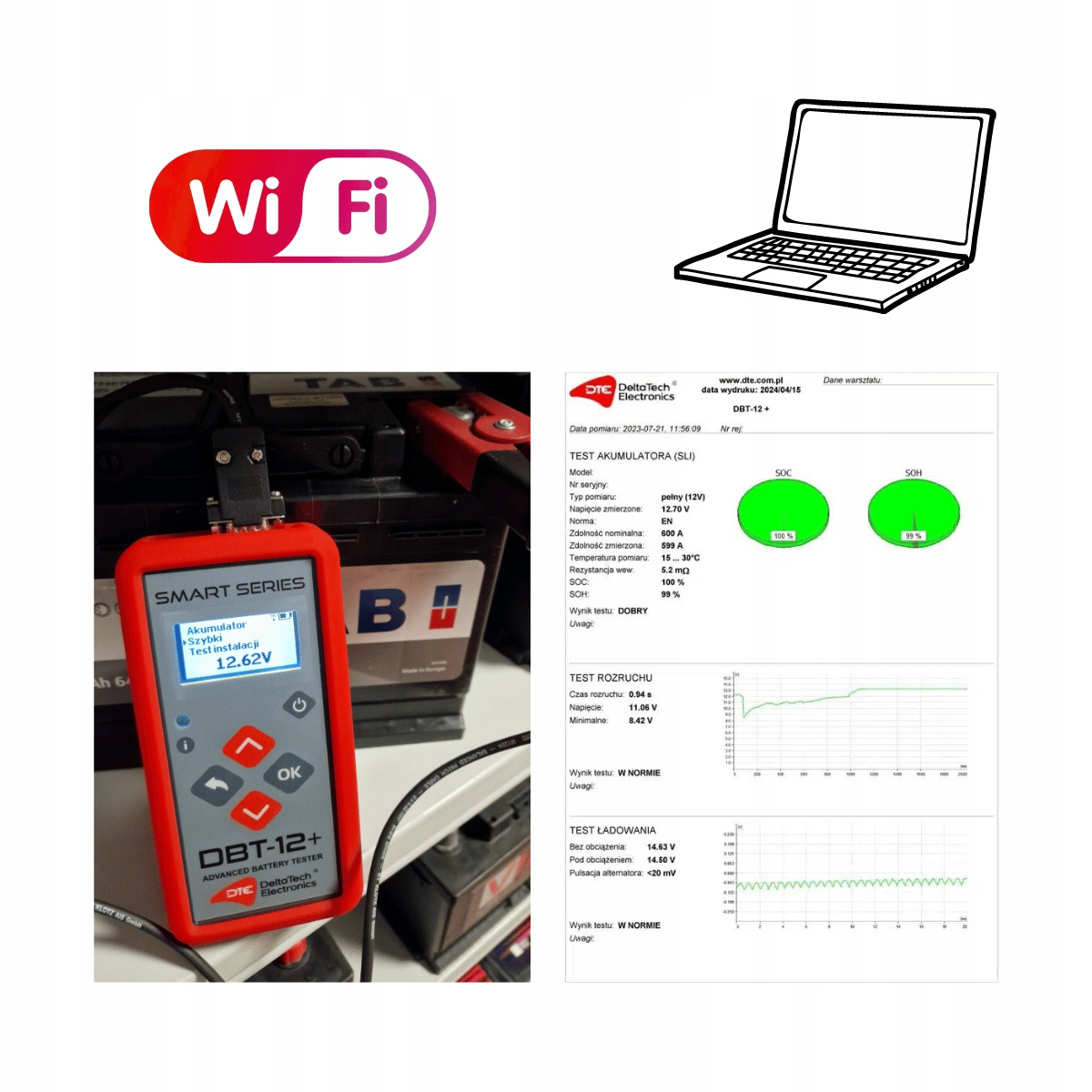 DBT-12+ — это усовершенствованный тестер аккумуляторов и электрических систем автомобиля. Он позволяет измерять напряжение, пусковой ток, состояние заряда и степень износа аккумуляторов напряжением 6 В и 12 В, а также диагностировать систему запуска и зарядки в автомобилях с напряжением 6 В, 12 В и 24 В. Благодаря встроенному аккумулятору вы также можете проверить сильно разряженные аккумуляторы.