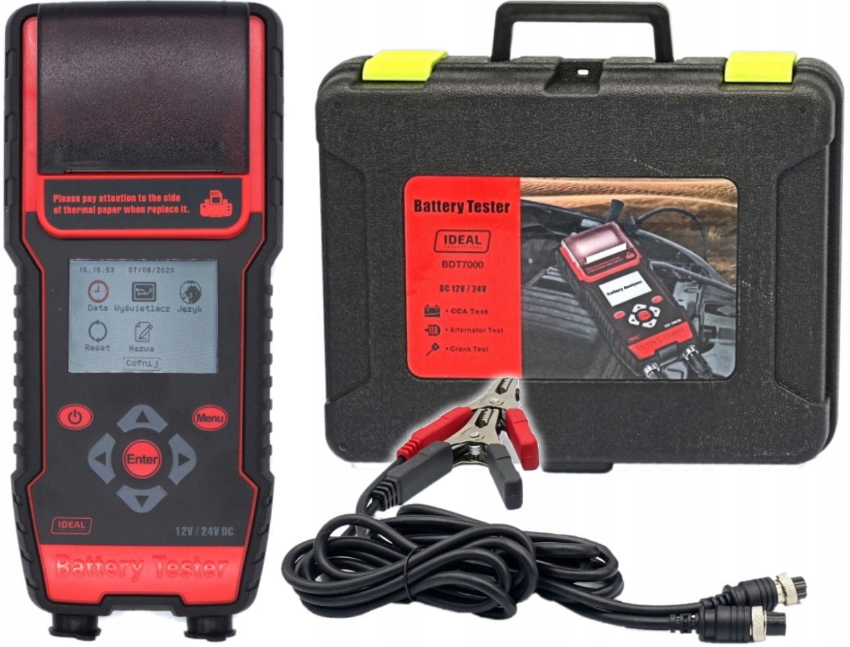 Тестер батареи и установки bdt7000 12 / 24V с цветным ЖК -дисплеем, а принтер предназначен для влажного / VRLA / Gel / EFB / AGM Spiral / AGM плоских батарей. Батарея и возможность запуска батарей 12V , используемые в транспортных средствах (тест батареи)