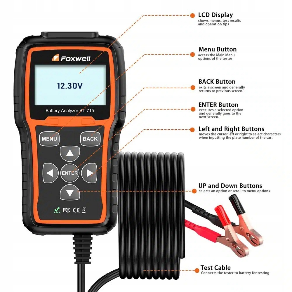 Foxwell BT715 – тестер аккумуляторных батарей 12 В/24 В и анализатор системы запуска/зарядки