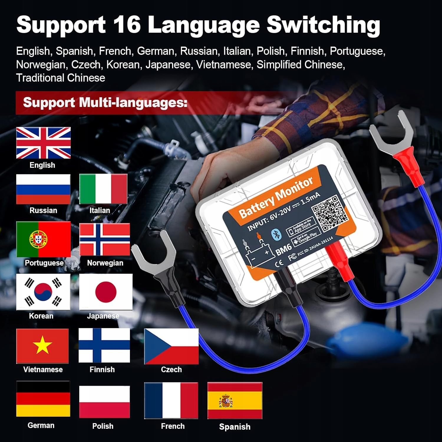Обновленная версия тестера аккумуляторов проста в установке. Тестер автомобильного аккумулятора имеет компактный внешний вид и его легко носить с собой. Просто подключитесь к аккумулятору вашего автомобиля, загрузите бесплатное приложение, подключите к приложению подключенную систему мониторинга аккумулятора и получайте информацию в режиме реального времени за считанные секунды. Возможность отслеживать заряд аккумулятора в нужное время независимо от погоды — хороший выбор для автолюбителей!