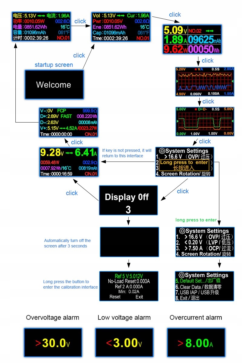 Универсальный тестер, предназначенный для проверки зарядных устройств, блоков питания, павербанков, кабелей и т. д. с разъемами USB-A, USB-C и Micro USB