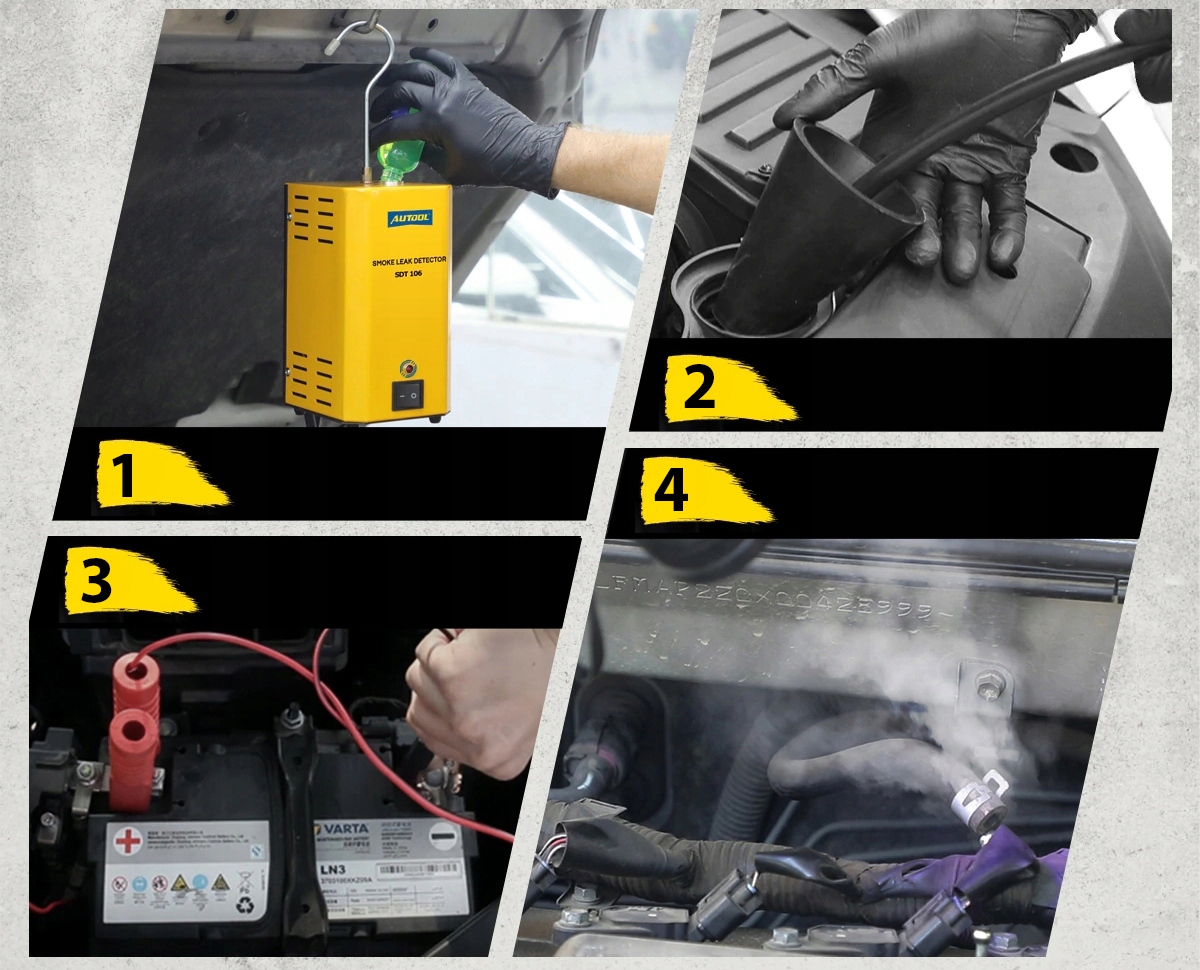 Профессиональный автоматический течеискатель труб, шланги, коннекторы, монтаж с использованием дымогенератора. Это поможет нам быстро и точно обнаружить утечки в трубопроводных системах за считанные минуты. Возможность использования устройства для проверки системы впуска, проверки выхлопной системы, проверки системы охлаждения, проверки герметичности автомобиля, проверки системы топливного бака, проверки различной трубопроводной арматуры.
