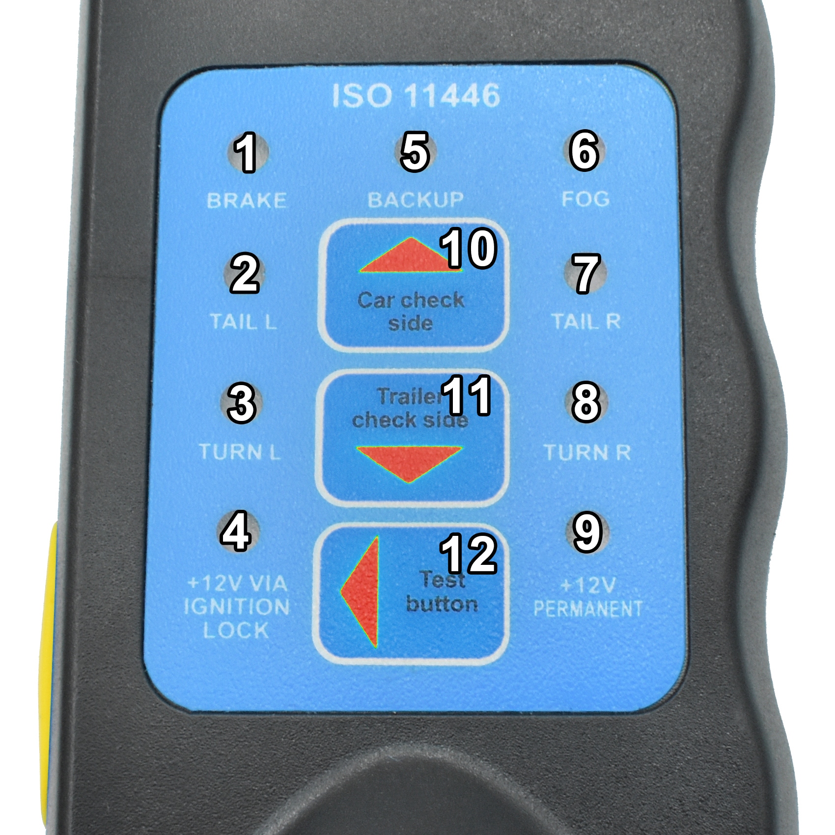ПРИМЕЧАНИЕ 1: Из-за низкой нагрузки на светодиодные лампы тестер не подходит для проверки установок в прицепах на основе светодиодного освещения.