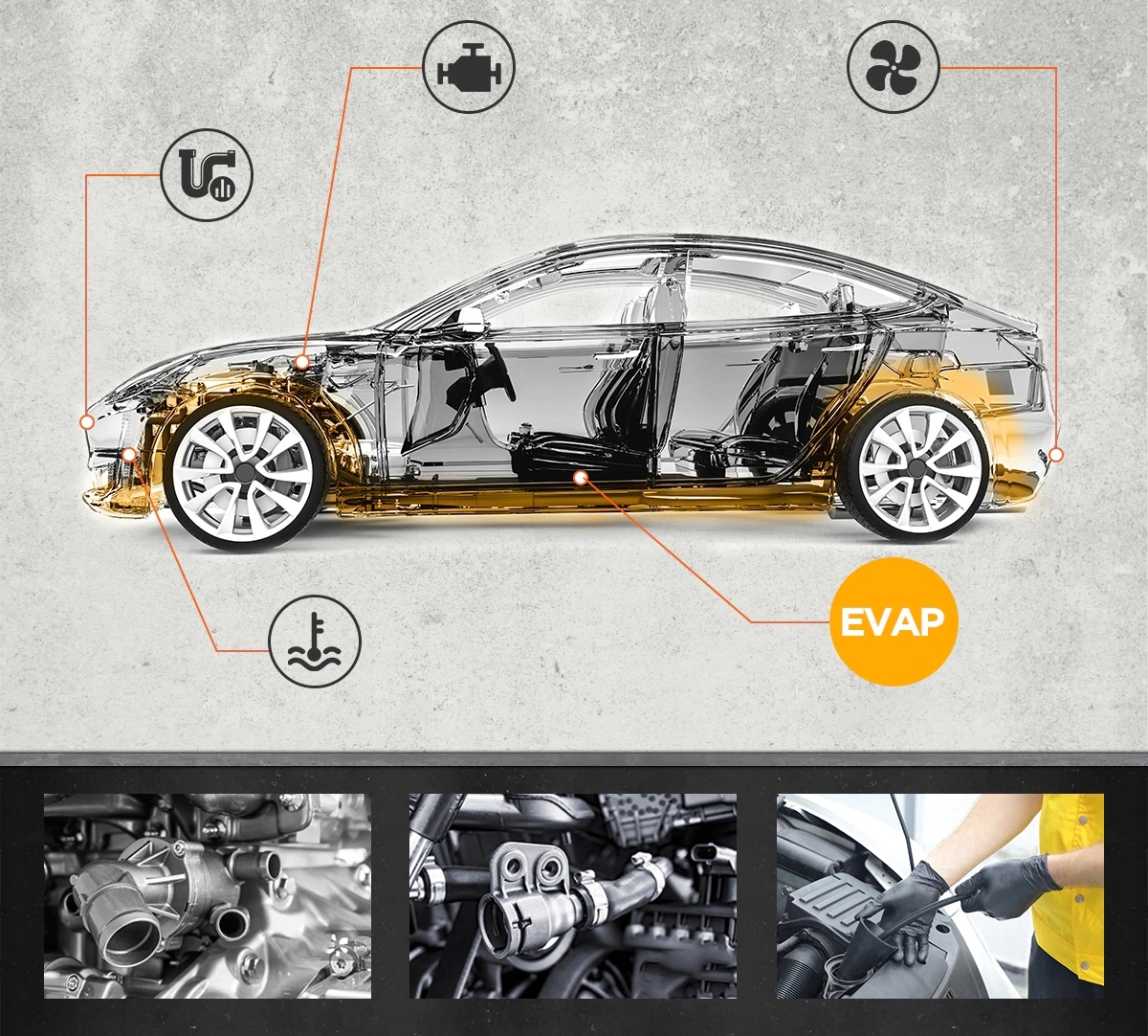 3. Быстрый тест на дым для систем EVAP, утечек турбокомпрессора, системы впуска, выхлопной системы, системы охлаждения, автомобильного уплотнения, системы топливного бака, различных трубопроводных фитингов и многого другого. Подходит для всех моделей автомобилей, например, мотоциклов, снегоходов, внедорожников, квадроциклов, легких грузовиков и моторных лодок.