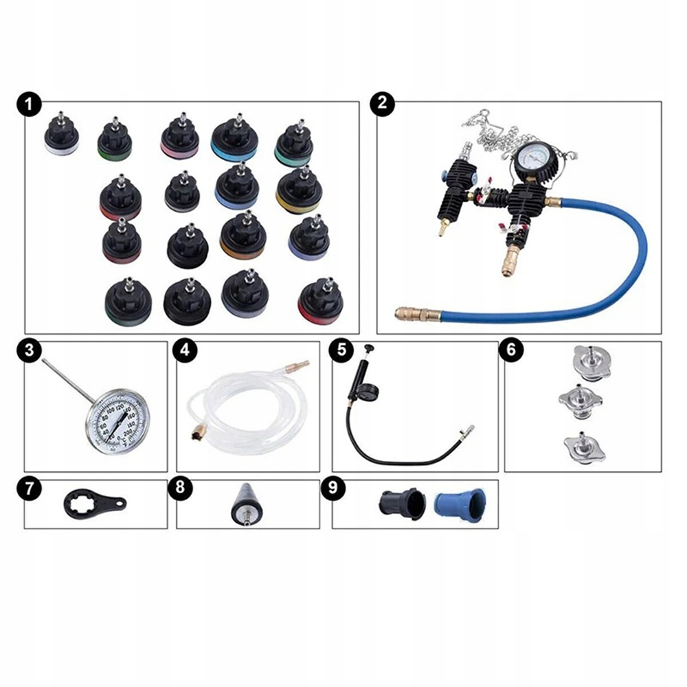 ТЕСТЕР УТЕЧЕК СИСТЕМЫ ОХЛАЖДЕНИЯ ДЛЯ КОНТРОЛЯ СИСТЕМЫ ОХЛАЖДЕНИЯ, УНИВЕРСАЛЬНЫЙ, 28 ШТ.