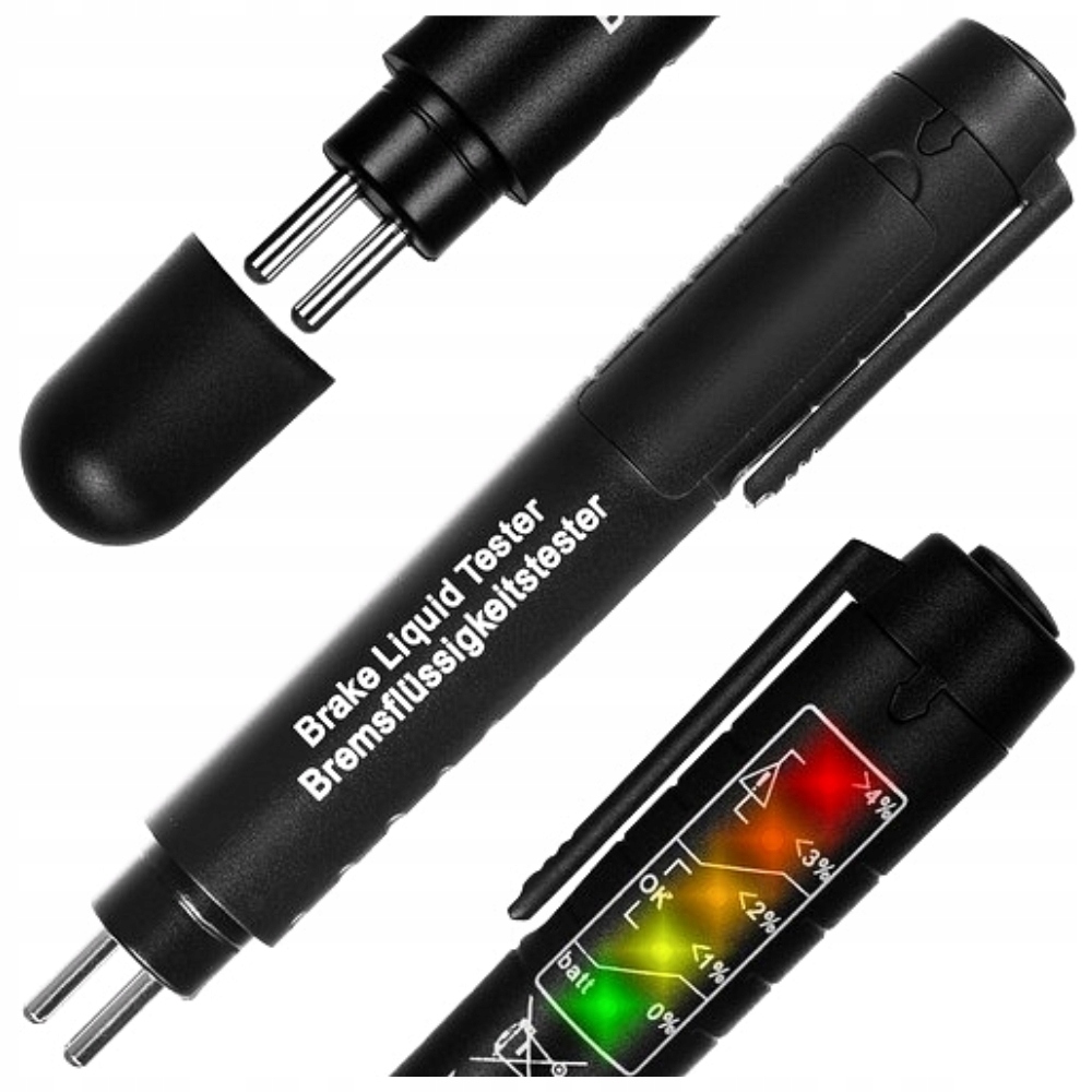 - ТОЧНОСТЬ - принцип работы тестера основан на измерении содержание воды в тормозной жидкости. Просто погрузите электроды в жидкость. Благодаря точному измерению с помощью индикаторов в виде 5 светодиодов вы можете быть уверены, что получите точное измерение уровня воды в тормозной жидкости.