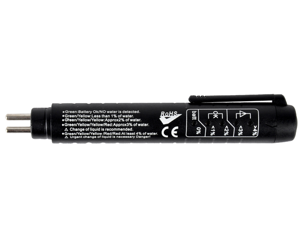 Тестер позволяет быстро и удобно проверить содержание воды в тормозной жидкости. Основным параметром, определяющим качество тормозной жидкости, является температура кипения, которая, в свою очередь, тесно связана с содержанием воды. Содержание воды примерно 3,5% снижает температуру кипения жидкости примерно на 100°C.