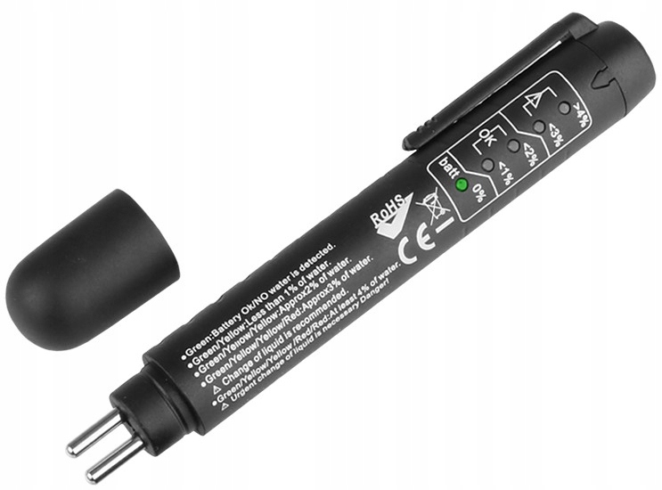 - Тестер жидкости измеряет процентное содержание воды в тормозной жидкости. Тормозная жидкость не должна содержать более 1,5% воды.